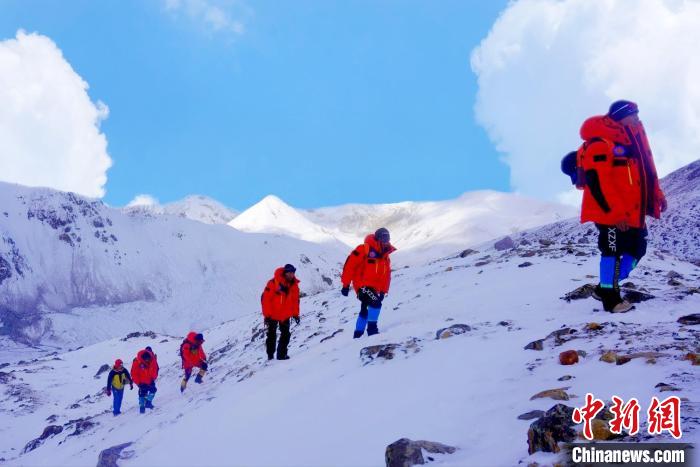 國家高山救援拉薩大隊隊員向海拔6010米洛堆峰進發(fā)?!〖馈z