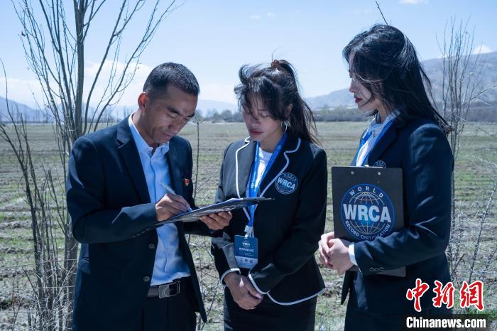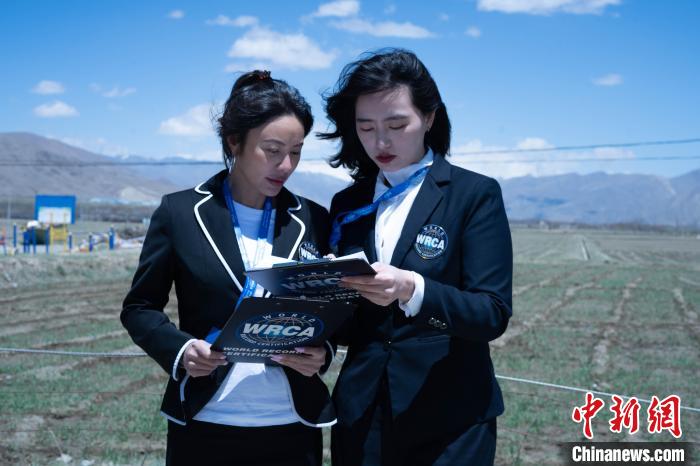 圖為世界紀錄認證中方代表劉一哲(中)為隆子縣頒發(fā)世界紀錄認證證書。貢嘎來松 攝