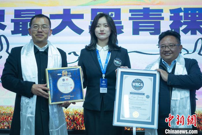 10日,經(jīng)世界紀錄認證(WRCA)官方人員現(xiàn)場審核,西藏隆子縣被認證為“世界最大黑青稞種植基地”。