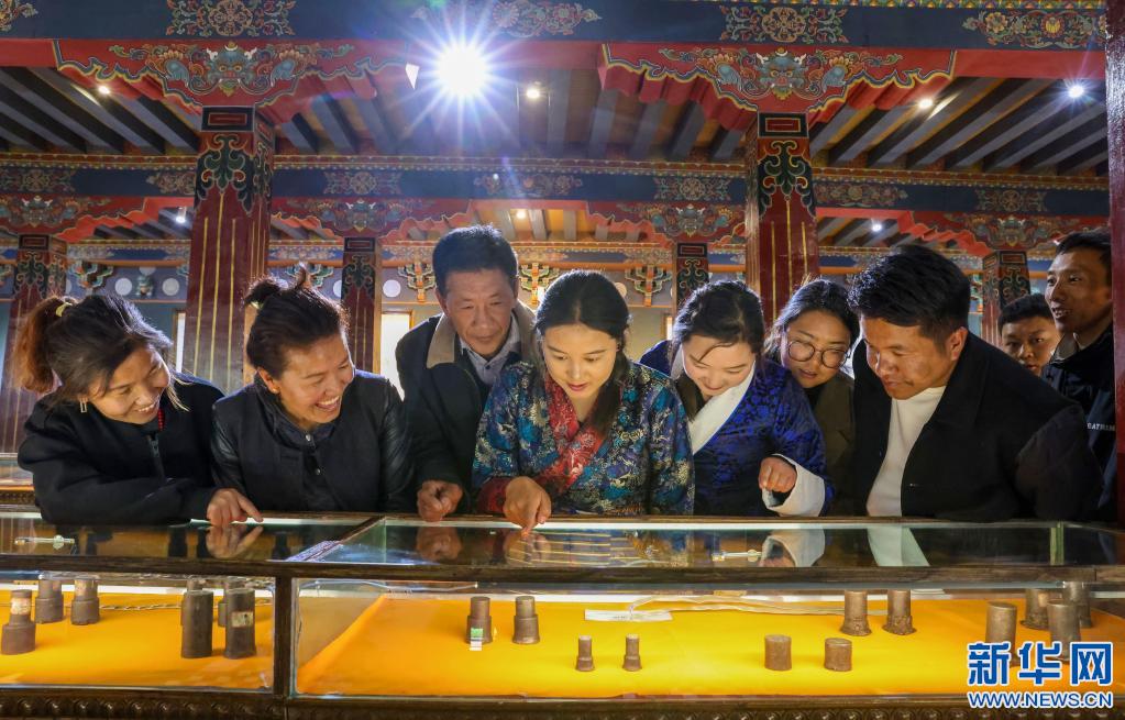 游客在西藏奪底錢幣博物館觀看鑄幣模具文物。(5月18日攝)新華社記者 姜帆 攝