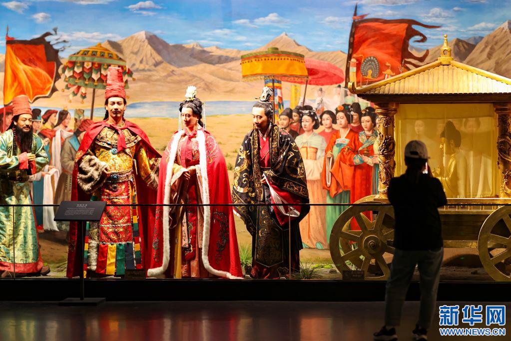 游客在西藏博物館參觀文成公主進藏場景展示(5月17日攝)。新華社記者 姜帆 攝