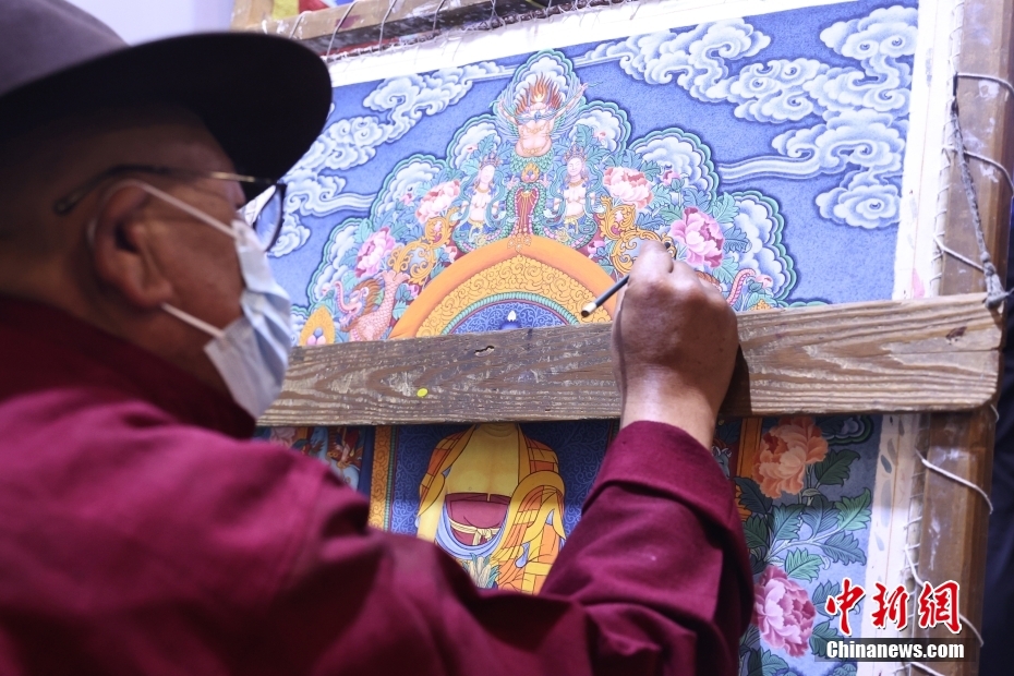 5月23日,“2023·中國(guó)西藏發(fā)展論壇”在北京舉行。會(huì)場(chǎng)外,活潑獨(dú)特的藏式迎賓舞蹈、展示西藏人文自然風(fēng)貌的圖片,已在論壇開幕前預(yù)熱起探討西藏新發(fā)展的氛圍。圖為藏族藝人現(xiàn)場(chǎng)進(jìn)行唐卡繪制。