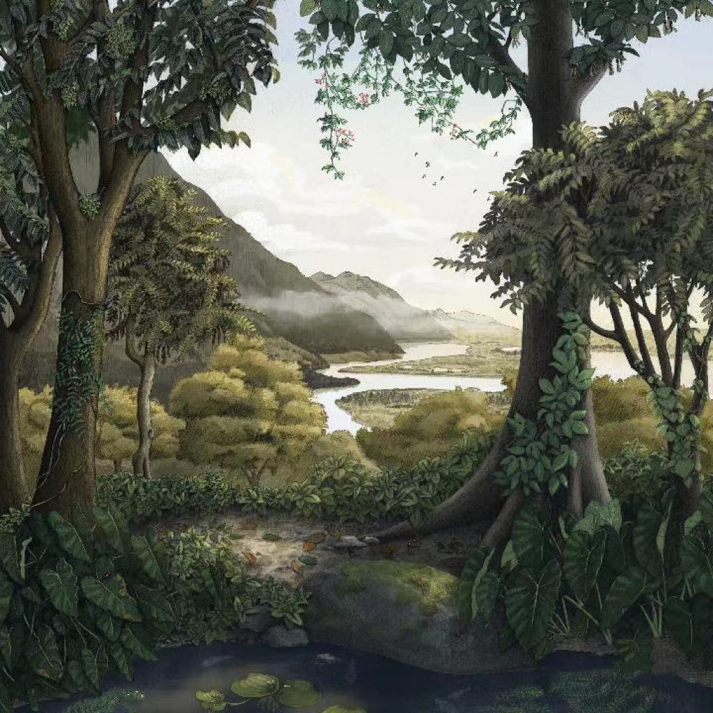 青藏高原部分地區(qū)生物群復原圖。(中國科學院西雙版納熱帶植物園供圖)