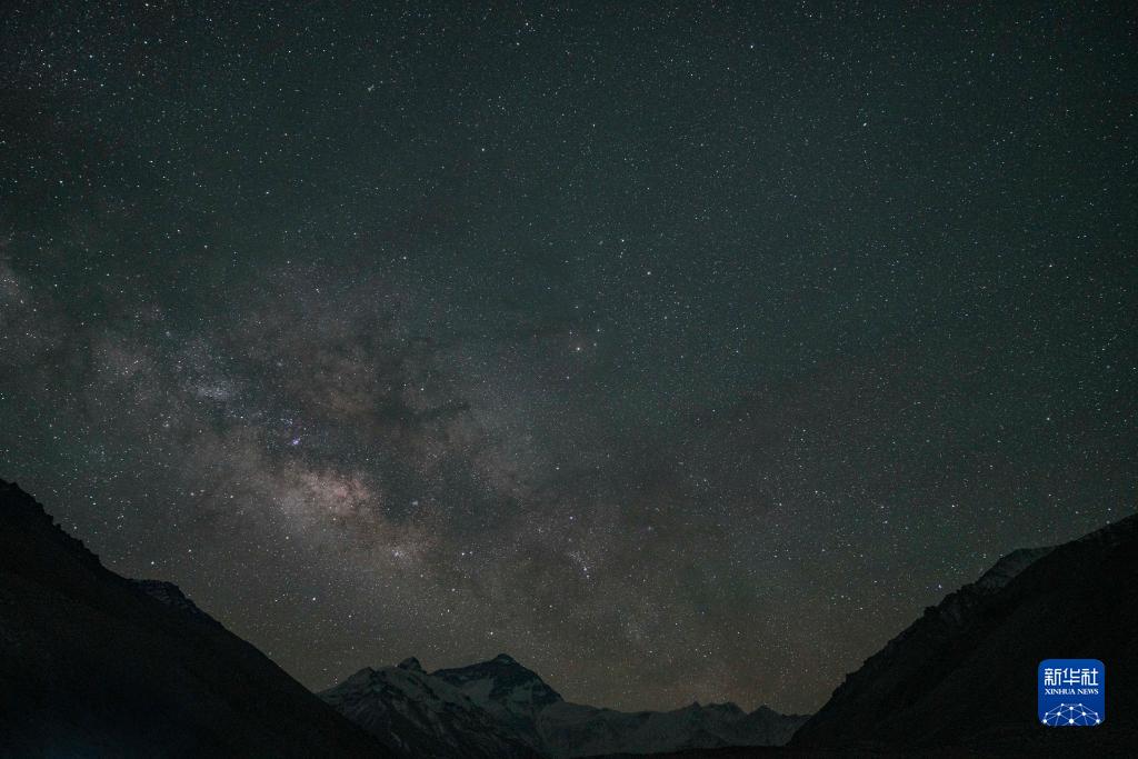這是5月23日拍攝的銀河和珠穆朗瑪峰。新華社記者 孫非 攝