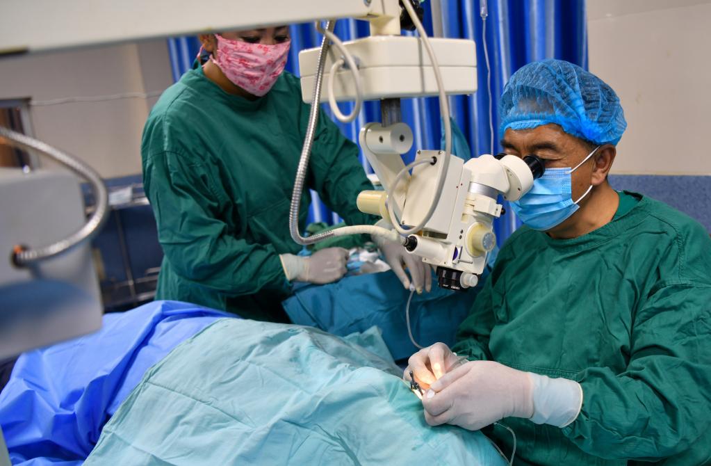 6月8日,光明眼科康復(fù)診療院的醫(yī)生在為一位農(nóng)牧民患者做白內(nèi)障手術(shù)。
