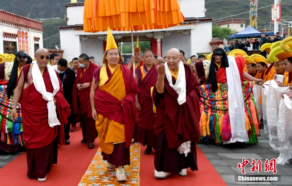 圖為6月12日,班禪在西藏昌都強(qiáng)巴林寺禮佛講經(jīng)。
