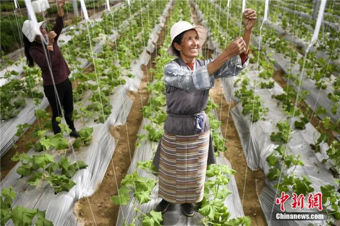 西藏山南扎囊縣綠之源智慧農業(yè)項目的工人正在勞作。楊華峰 攝