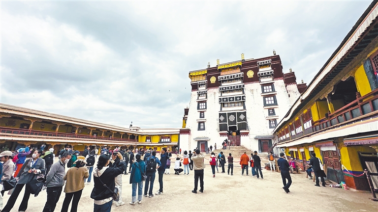 活動邀請了文化和旅游部領(lǐng)導、援藏省區(qū)市嘉賓、旅游企業(yè)代表以及媒體記者團200余人,前往布達拉宮、大昭寺、西藏博物館、羅布林卡等景點“打卡”。在布達拉宮東大殿,大家觀賞記載有西藏佛教發(fā)展歷史、五世達賴生平、文成公主進藏過程的壁畫;來到羅布林卡,蔥綠的樹木、鮮艷的花朵、宏偉的藏式建筑讓人流連忘返。