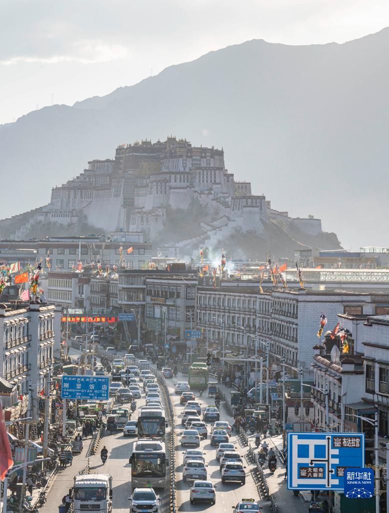 布達(dá)拉宮腳下車流如織(6月7日攝)。新華社記者 孫非 攝