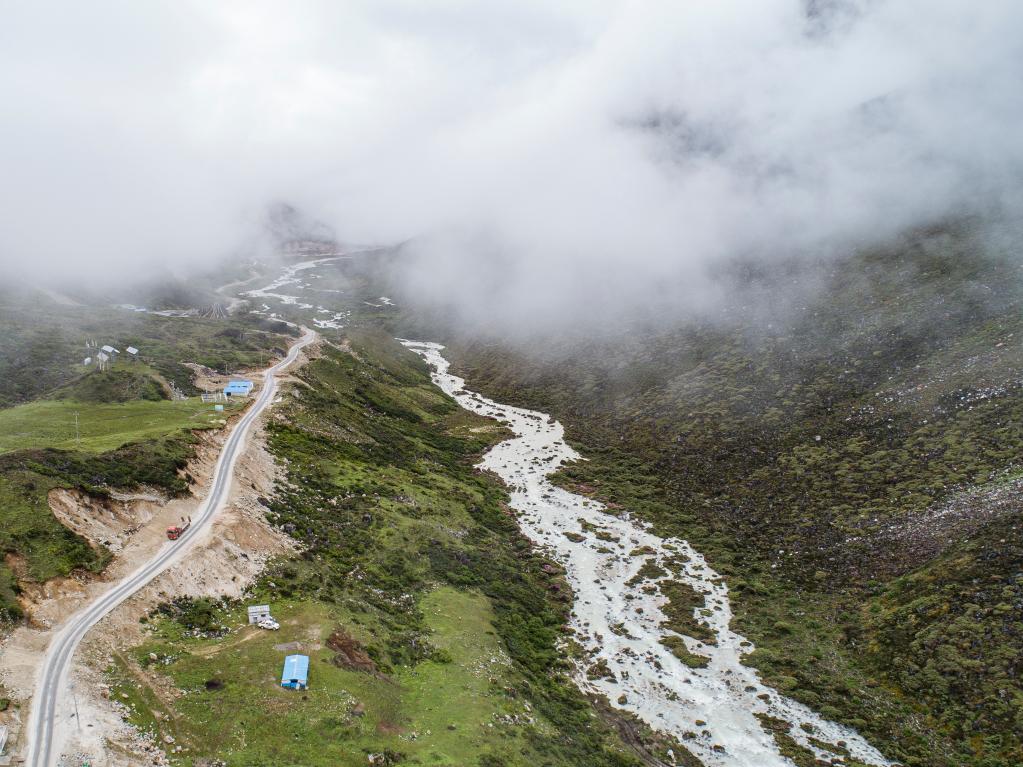 杰羅布村附近的牧場(7月1日攝,無人機(jī)照片)。新華社記者 孫非 攝