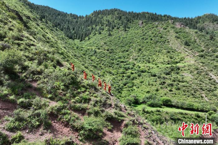 圖為消防員爬山尋找標(biāo)記點(diǎn)。姚天銳 攝