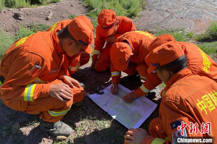 圖為消防員依據(jù)圖上換算的坐標(biāo)成功找到標(biāo)記點(diǎn)。姚天銳 攝