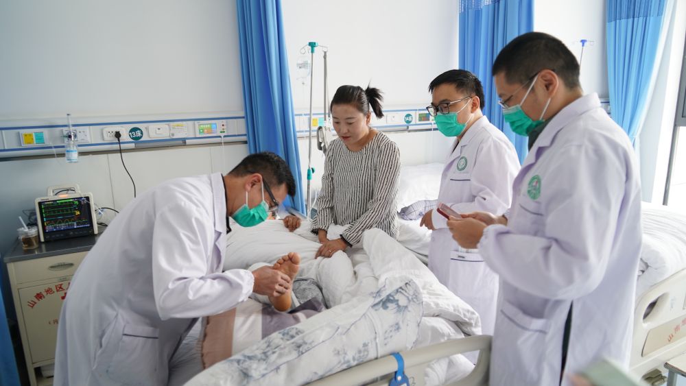 6月21日,王俊文、李燁等專家為術(shù)后患者檢查。