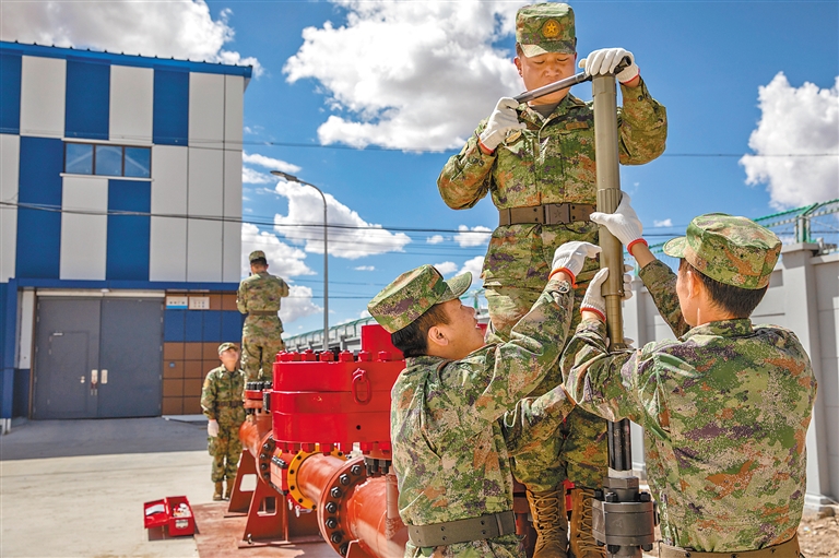 在昆侖山口,軍區(qū)保障部某管線大隊(duì)四中隊(duì)守護(hù)著格拉輸油管線海拔最高一段,這里的100多公里線路橫亙在海拔4500多米的無人區(qū),官兵們不顧高寒缺氧和烈日大風(fēng),沿著山脊逐段排查情況。官兵們紛紛表示,要大力發(fā)揚(yáng)老西藏精神和大隊(duì)“五缺五不缺”精神,面對自動(dòng)化程度更高、科技含量更高的管線,將以絕對的忠誠、過硬的本領(lǐng)、無私的奉獻(xiàn),守護(hù)好“雪域大動(dòng)脈”安全,持續(xù)為西藏的繁榮發(fā)展作出更多貢獻(xiàn)。
