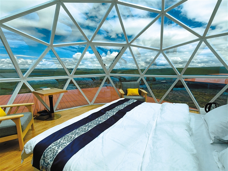 圖為夯錯濕地暗夜星空景區(qū)戶外星空房一角。 記者 趙書彬 萬靖 攝