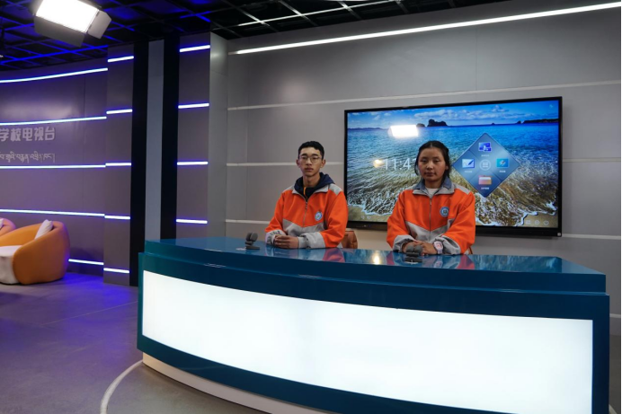 圖為學校電視臺擔任播音主持人的卡索旺堆(左)和索日吉(右)