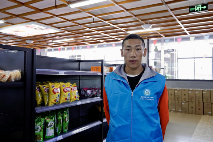 為學生全面發(fā)展夯實基礎,學校特別設置了多樣化的功能室。每周,來自藏醫(yī)專業(yè)的高三學生索日吉和卡松旺堆,都會在課余時間在校園電視臺擔任播音主持人?!霸谶@里類似的機會有很多,能見到的、聽到的、觸摸到的變多了,眼界也變開闊了?!笨ㄋ赏颜f。同為高三學生的朗崗平措,每天都會去模擬創(chuàng)業(yè)實訓基地的學生生活超市值班。作為店長,他現(xiàn)在已經熟練掌握了超市運營中各環(huán)節(jié)的操作流程,并能夠完全獨立地和各企業(yè)對接進貨。據了解,自去年12月正式開業(yè)起,學生生活超市已盈利42萬元,未來這些收入將作為學生創(chuàng)業(yè)啟動基金。