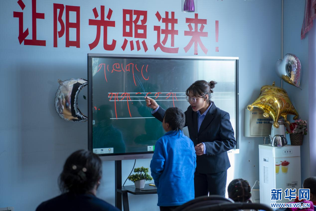 圖為那曲市特殊教育學(xué)校的老師在上課(9月4日攝)。新華網(wǎng) 旦增努布 攝