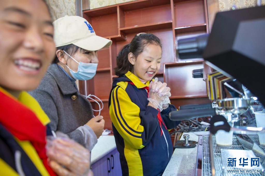 圖為益西卓姆(左)和拉巴卓瑪(右)在上咖啡課程(9月4日攝)。新華網(wǎng) 旦增努布 攝