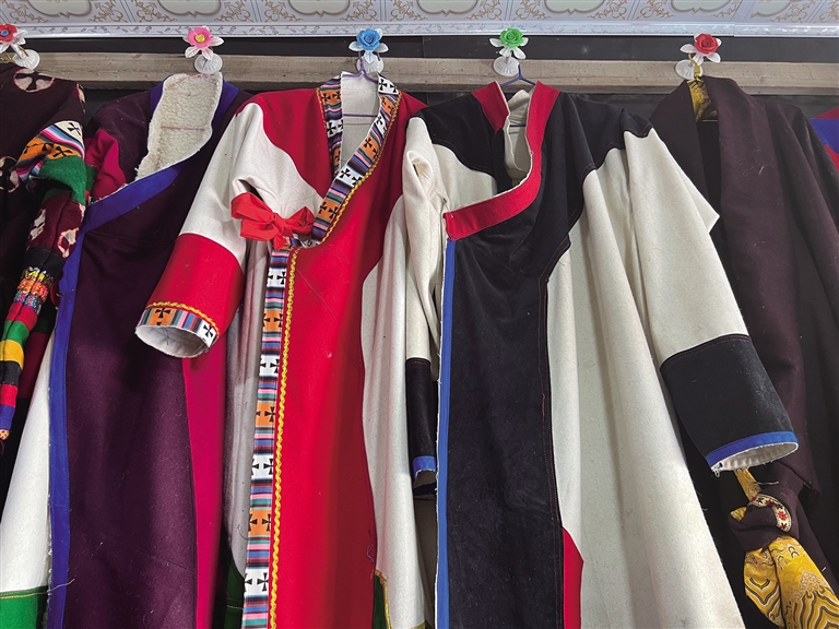 努拉今年66歲,自他曾祖父起,家人就開始從事“森郭服飾”制作,并將這項非遺技藝一代一代傳承了下來。努拉告訴記者:“從父親那一輩開始,由于外來服飾的流入,藏民族傳統(tǒng)服飾的發(fā)展就不如從前了,這對‘森郭服飾’的傳承也有很大的影響?!?/p>