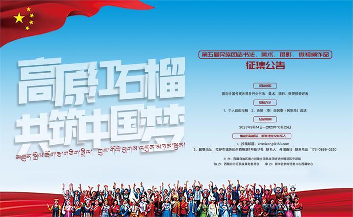 為深入學(xué)習(xí)貫徹習(xí)近平總書記關(guān)于加強和改進民族工作的重要思想,緊扣鑄牢中華民族共同體意識主線,持續(xù)深化著力創(chuàng)建全國民族團結(jié)進步模范區(qū),不斷促進各民族交往交流交融,即日起,西藏自治區(qū)著力創(chuàng)建全國民族團結(jié)進步模范區(qū)專項組辦公室決定在全國范圍開展“高原紅石榴 共筑中國夢”為主題的第五屆民族團結(jié)書法、美術(shù)、攝影、微視頻作品征集活動?,F(xiàn)將有關(guān)事宜公告如下。