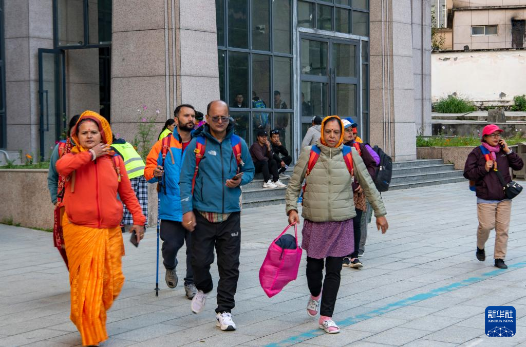 一隊(duì)外國游客通過吉隆口岸從我國出境到尼泊爾(9月11日攝)。新華社記者 姜帆 攝