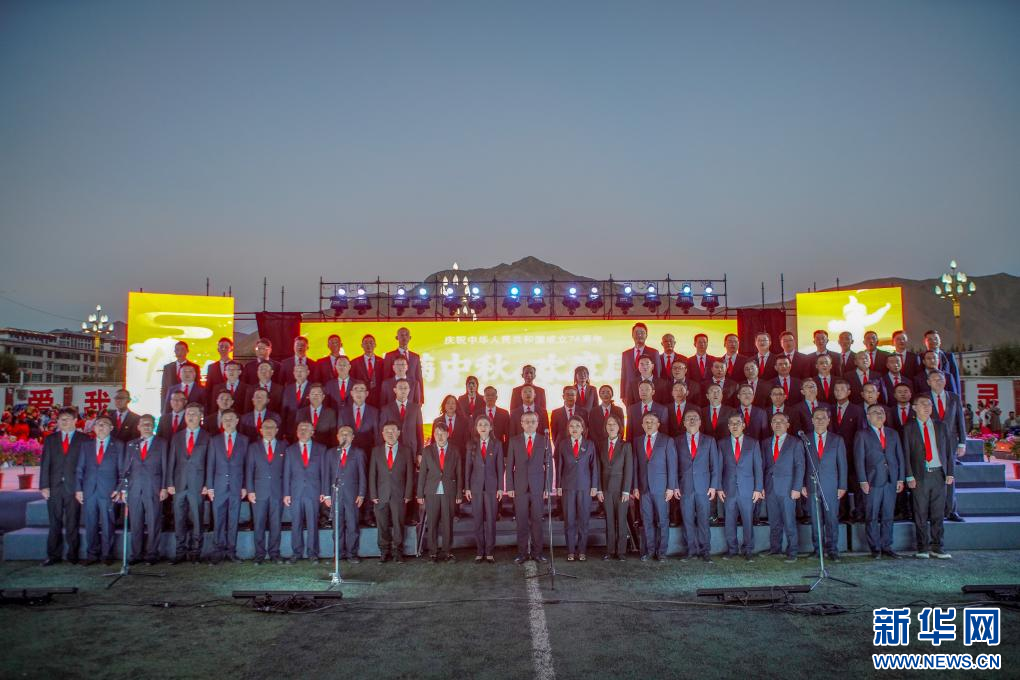 晚會中,安徽省第八批援藏工作隊(duì)全體成員合唱歌曲《我和我的祖國》。