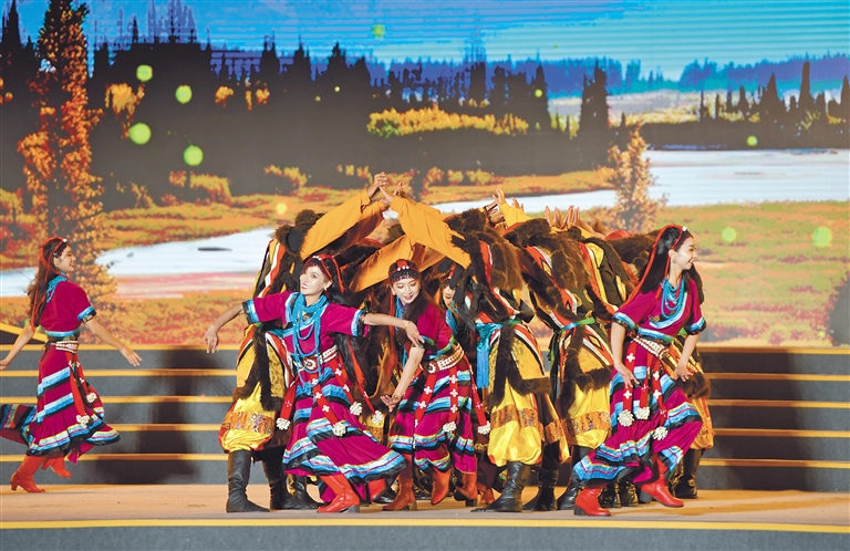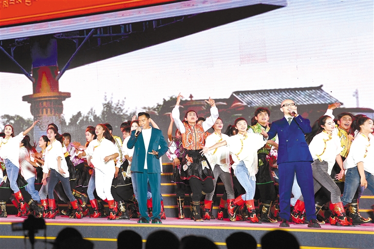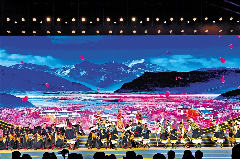 西藏自治區(qū)歌舞團、林芝市民族藝術(shù)團表演的開場歌舞《扎西德勒》。記者 洛?!z