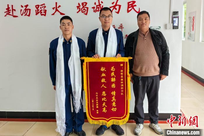 10月9日,為了感謝消防救援人員的緊急援助,被救助的孕婦家屬拿著一面“為民解困情真意切,獻(xiàn)血救人恩比天高”字樣的錦旗送到波密縣森林消防中隊(duì)。家屬不停地說著感謝,并說因?yàn)檩斞皶r(shí),孕婦已經(jīng)轉(zhuǎn)危為安了。