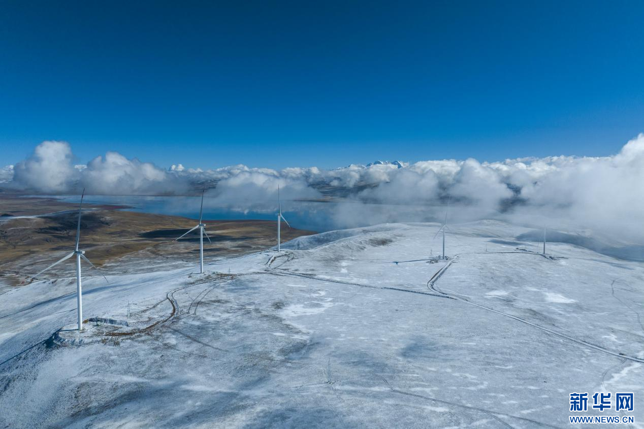10月13日拍攝的西藏措美哲古風電項目一處風電機組(無人機照片)。新華網 旦增努布 攝