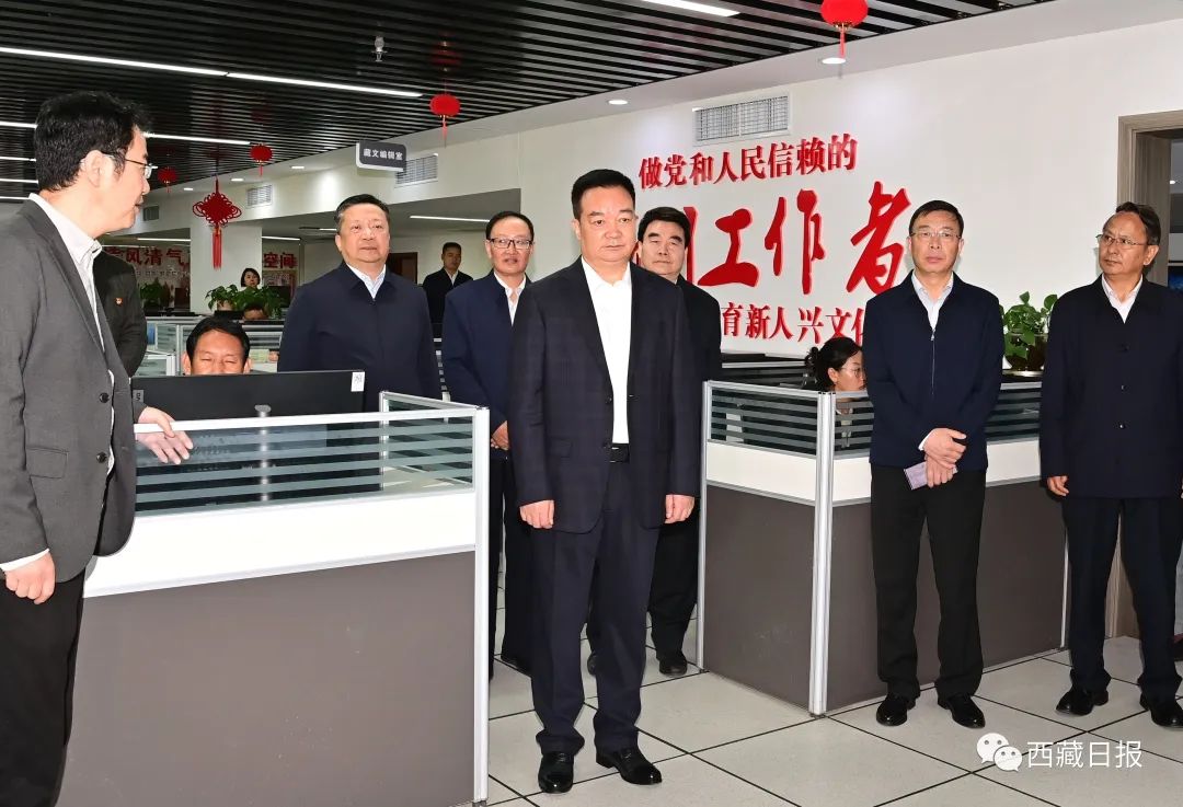 2023年9月25日,自治區(qū)黨委書記王君正來到西藏日報(bào)社、西藏廣播電視臺調(diào)研。這是王君正在西藏日報(bào)社詳細(xì)了解市場化運(yùn)營、全媒體傳播體系建設(shè)、媒體深度融合發(fā)展等情況。記者 旦增西旦 攝