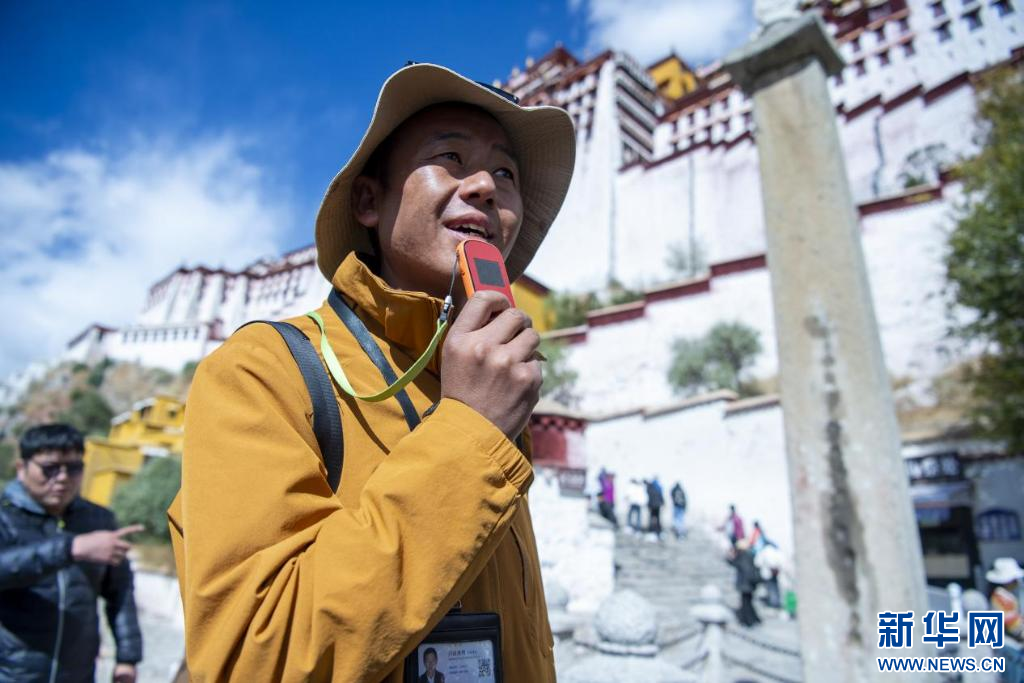 10月18日,一名導游在向游客講解布達拉宮歷史。新華網(wǎng) 旦增努布 攝