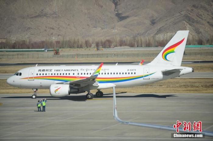 1月7日,一架西藏航空客機在拉薩貢嘎機場準(zhǔn)備起飛。當(dāng)日是2023年春運首日,西藏拉薩貢嘎機場旅客出行井然有序。(中新社記者 貢嘎來松攝)