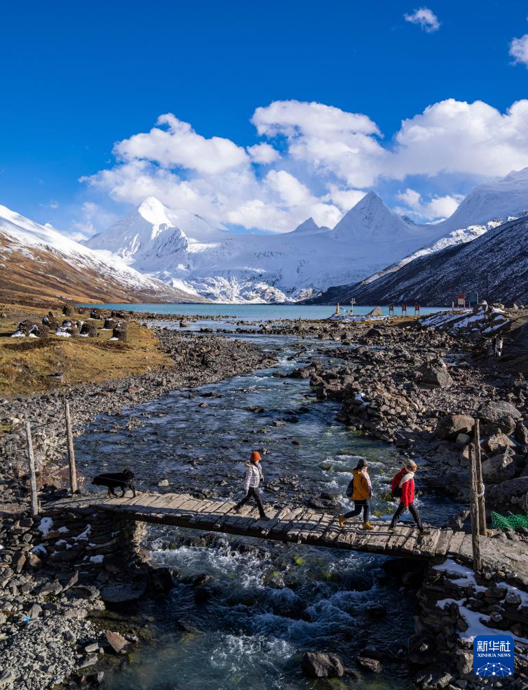 游客徒步經(jīng)過(guò)薩普雪山腳下的木橋(10月28日攝)。新華社記者 孫非 攝