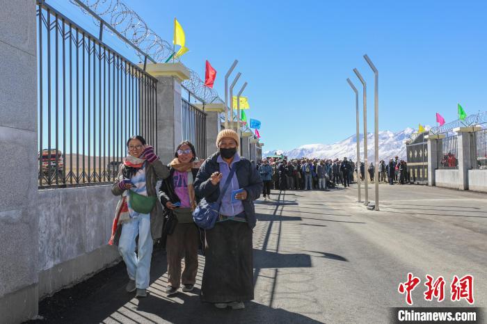 圖為里孜口岸尼泊爾旅客排隊(duì)等待入境。郭遠(yuǎn)敬 攝