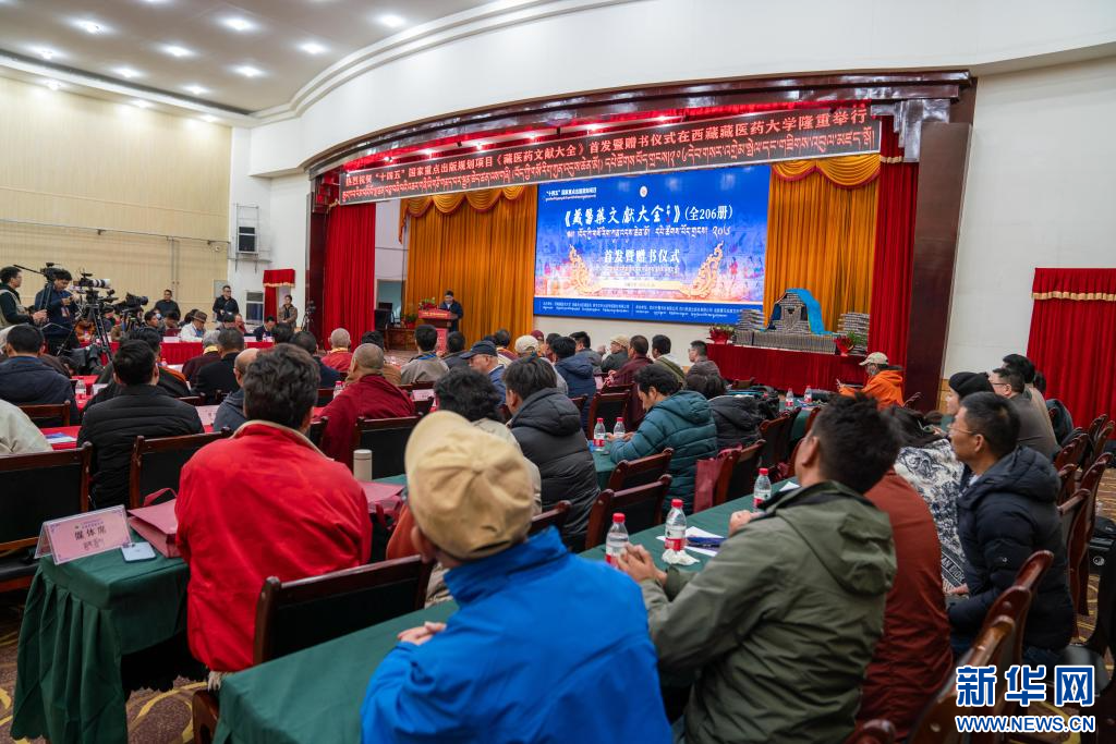 11月16日,《藏醫(yī)藥文獻(xiàn)大全》首發(fā)暨贈(zèng)書儀式現(xiàn)場(chǎng)。新華社記者 旦增尼瑪曲珠 攝