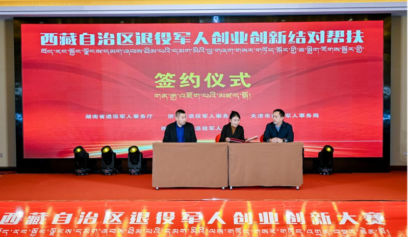 儀式上,西藏自治區(qū)退役軍人事務(wù)廳分別與湖南省退役軍人事務(wù)廳、浙江省退役軍人事務(wù)廳(線上同步簽約)、天津市退役軍人事務(wù)局簽署了結(jié)對幫扶協(xié)議,為助力西藏退役軍人創(chuàng)業(yè)創(chuàng)新,更好地服務(wù)經(jīng)濟社會發(fā)展奠定了基礎(chǔ)。