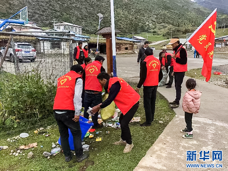 西藏昌都八宿縣然烏鎮(zhèn)來(lái)古村組織“冰川上的紅色家園”志愿服務(wù)隊(duì)開(kāi)展環(huán)境整治活動(dòng)(8月5日攝)。新華社發(fā)