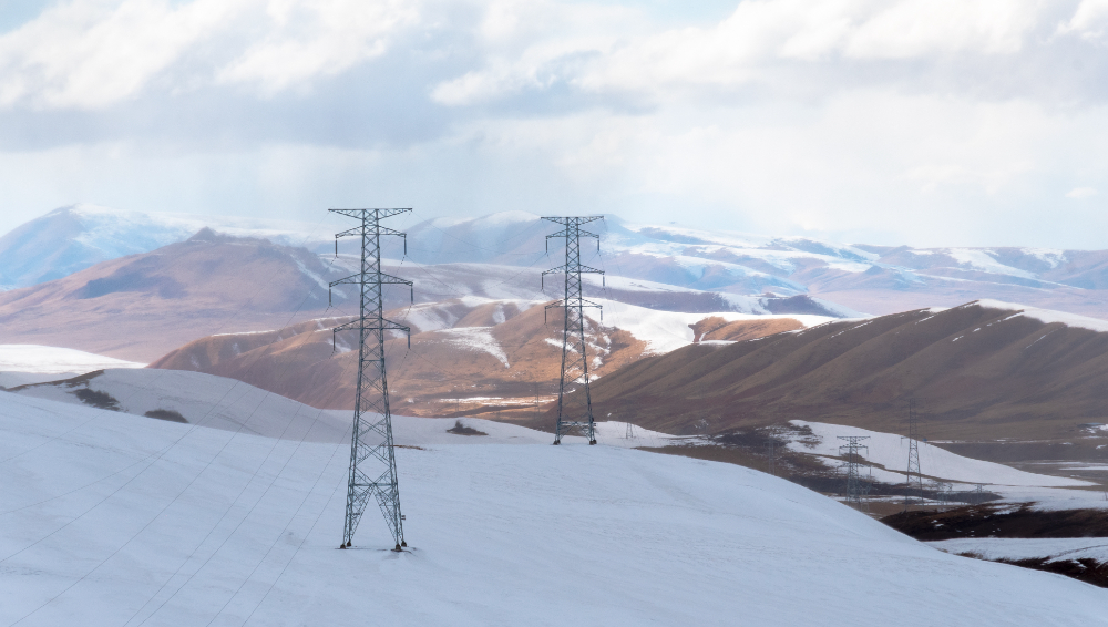 那曲冰天雪地里的電網(wǎng)。(趙清鵬 攝)