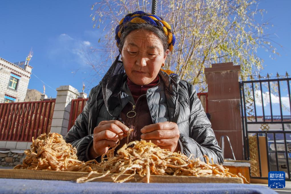 格桑旦增在檢查剛?cè)〕龅牟丶埖馁|(zhì)量(12月5日攝)。新華社記者 邵澤東 攝