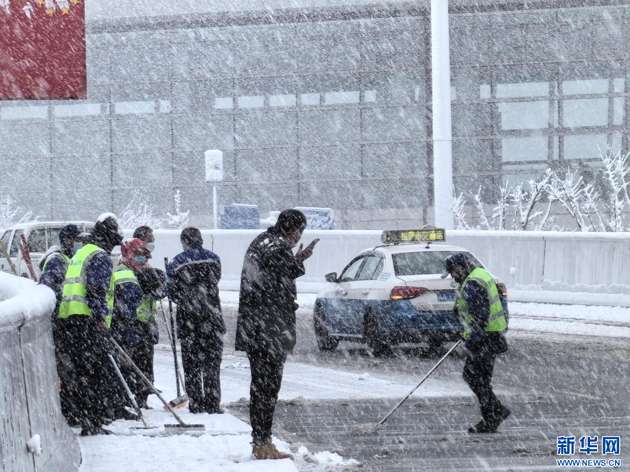 圖為工作人員在清理路面積雪。新華網 姚文杰 攝