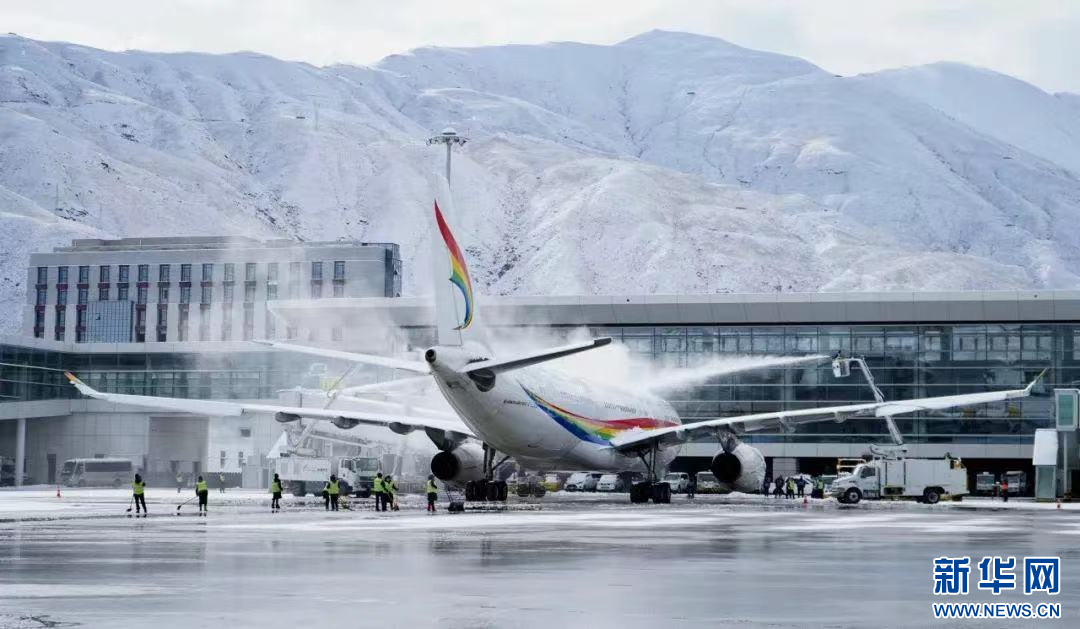 圖為拉薩貢嘎機場開展航空器除冰雪工作。新華網 白瑪群宗 攝