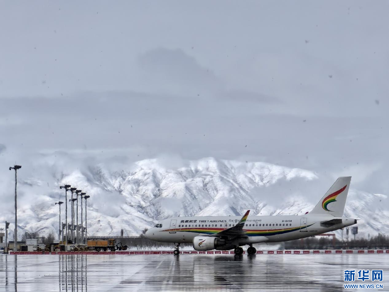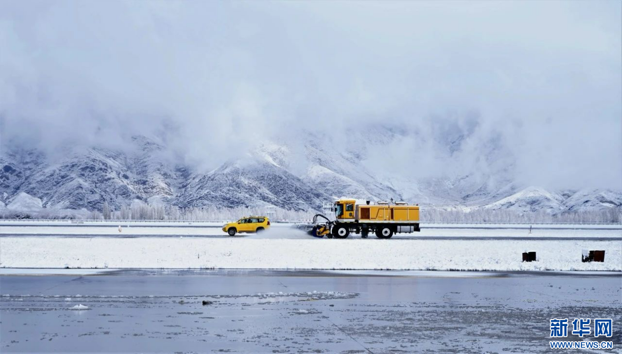 圖為拉薩貢嘎機場機坪除冰雪保障作業(yè)。新華網 白瑪群宗 攝