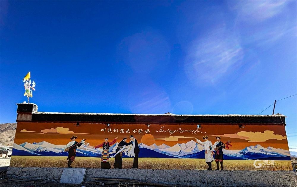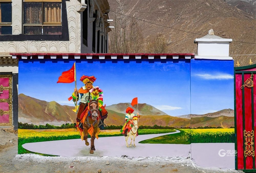 鄉(xiāng)村振興、民族團(tuán)結(jié)、道路安全、移風(fēng)易俗、傳統(tǒng)文化、現(xiàn)代文明、高原特色……各式各樣的場(chǎng)景,現(xiàn)在已經(jīng)出現(xiàn)在了桑珠孜區(qū)東嘎鄉(xiāng)、聶日雄鄉(xiāng)、曲美鄉(xiāng)、納爾鄉(xiāng)部分鄉(xiāng)村的道路兩旁。一幅幅栩栩如生的手繪墻畫,“爬上”了錯(cuò)落有致的藏式小樓,“登上”了一座座藏式院落的院墻,成為一道道亮麗的風(fēng)景線。在干凈整潔的鄉(xiāng)村道路旁,錯(cuò)落有致的農(nóng)家庭院上,粉刷一新的墻面上色彩艷麗的大型墻繪以直觀的畫面和村民喜聞樂(lè)見(jiàn)的形式,將鄉(xiāng)村振興、民族團(tuán)結(jié)、移風(fēng)易俗等內(nèi)容與農(nóng)村景觀有機(jī)結(jié)合,讓一堵堵“牛糞墻”有了新活力吸引著過(guò)往路人的目光。一幅幅栩栩如生的畫面、一段段民族團(tuán)結(jié)的故事,與鄉(xiāng)村環(huán)境融為一體,形成了“村中有畫、畫中有村”的整體風(fēng)貌;一面面文明和諧、多彩絢麗的彩繪墻,猶如一張張靈動(dòng)的文明標(biāo)簽,將黨的方針政策、藏族同胞的幸福生活活靈活現(xiàn)地展示在墻上,不僅扮靚了鄉(xiāng)村美景,也傳遞了向上向善向美的正能量,處處都能讓人感受到美麗鄉(xiāng)村文明發(fā)展的濃郁氣息。