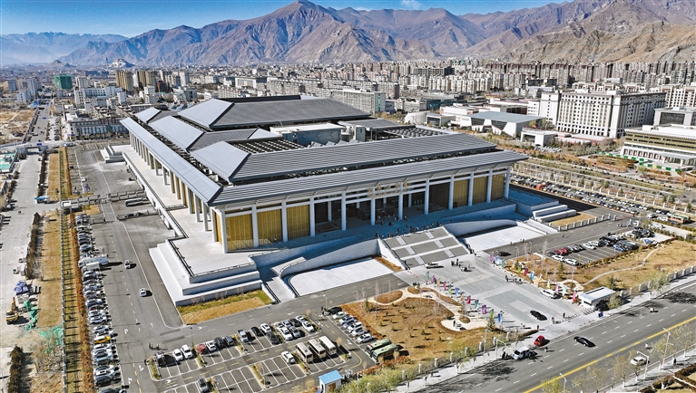圖為俯瞰西藏大劇院(無人機照片)。新華社記者 晉美多吉 攝