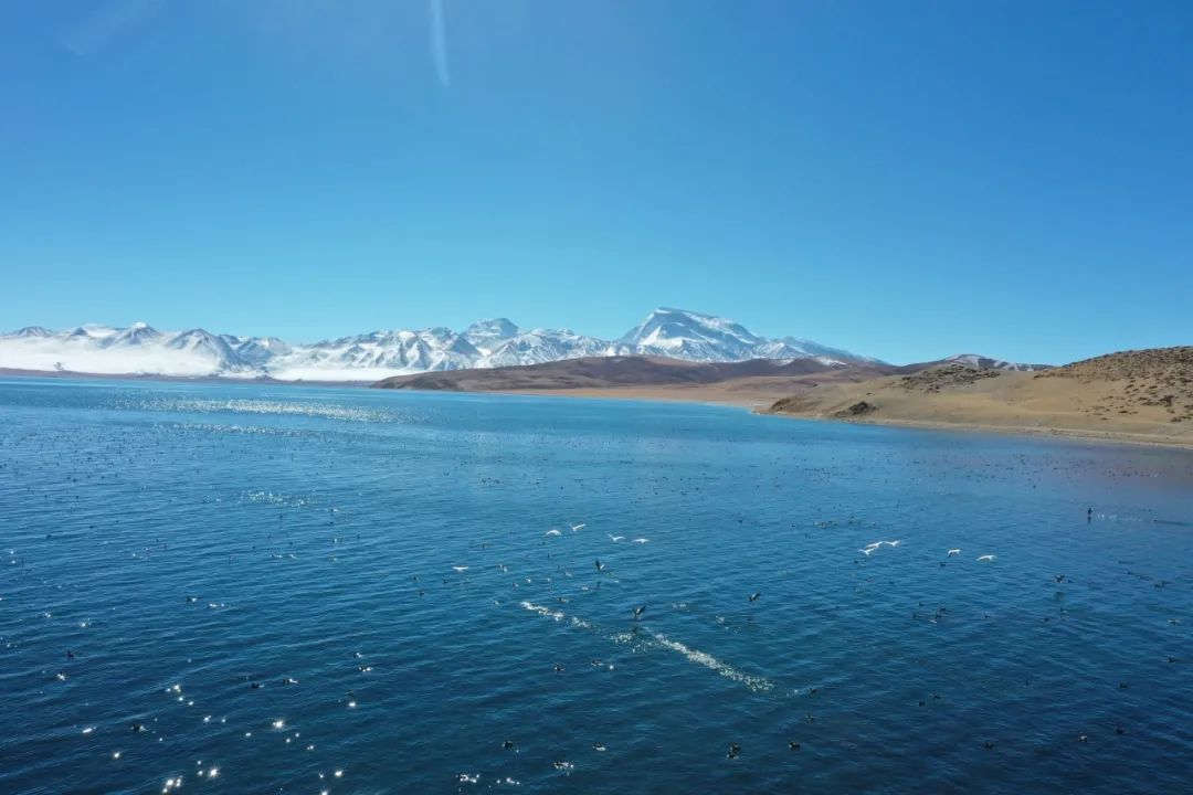 夏季的普莫雍錯(cuò),湖水清澈,冬天的普莫雍錯(cuò)湖面會隨著溫度降低結(jié)冰,表層通透可見湖底,裂紋蔓延整個(gè)湖面,在陽光的照射下,呈現(xiàn)出極致的藍(lán),美麗又浪漫,有著世界海拔最高、中國最大的藍(lán)冰湖美譽(yù),也被稱為“中國的貝加爾湖”,它所擁有的是西藏也是中國最夢幻純凈的藍(lán)色。