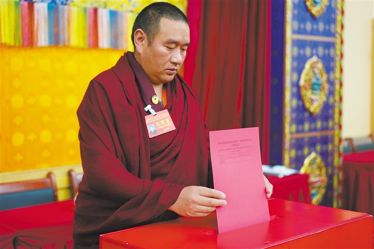 圖為政協(xié)委員在投選票。