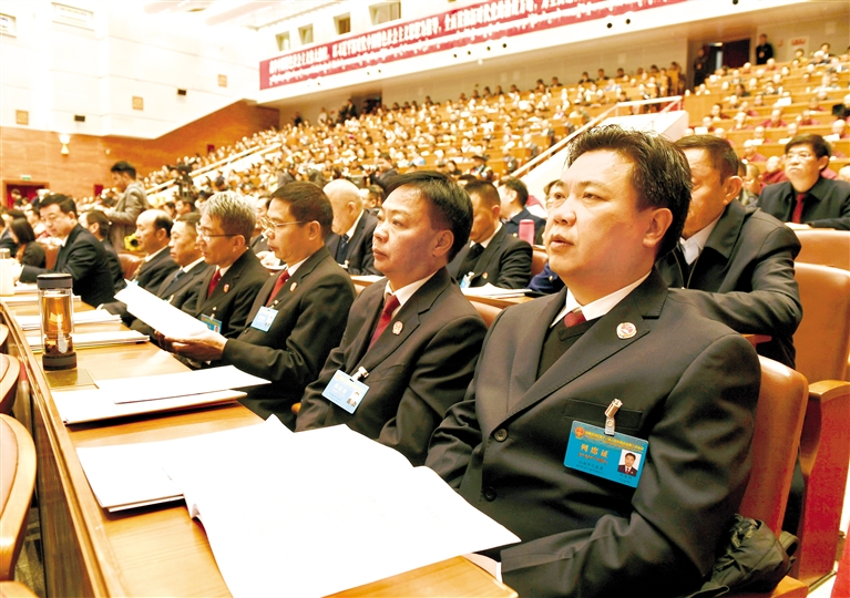 圖為列席人員認(rèn)真聆聽(tīng)政府工作報(bào)告。記者 旦增蘭澤 攝