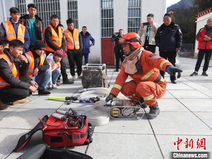 圖為消防指戰(zhàn)員強(qiáng)調(diào)注意事項。西藏林芝市森林消防支隊波密中隊供圖