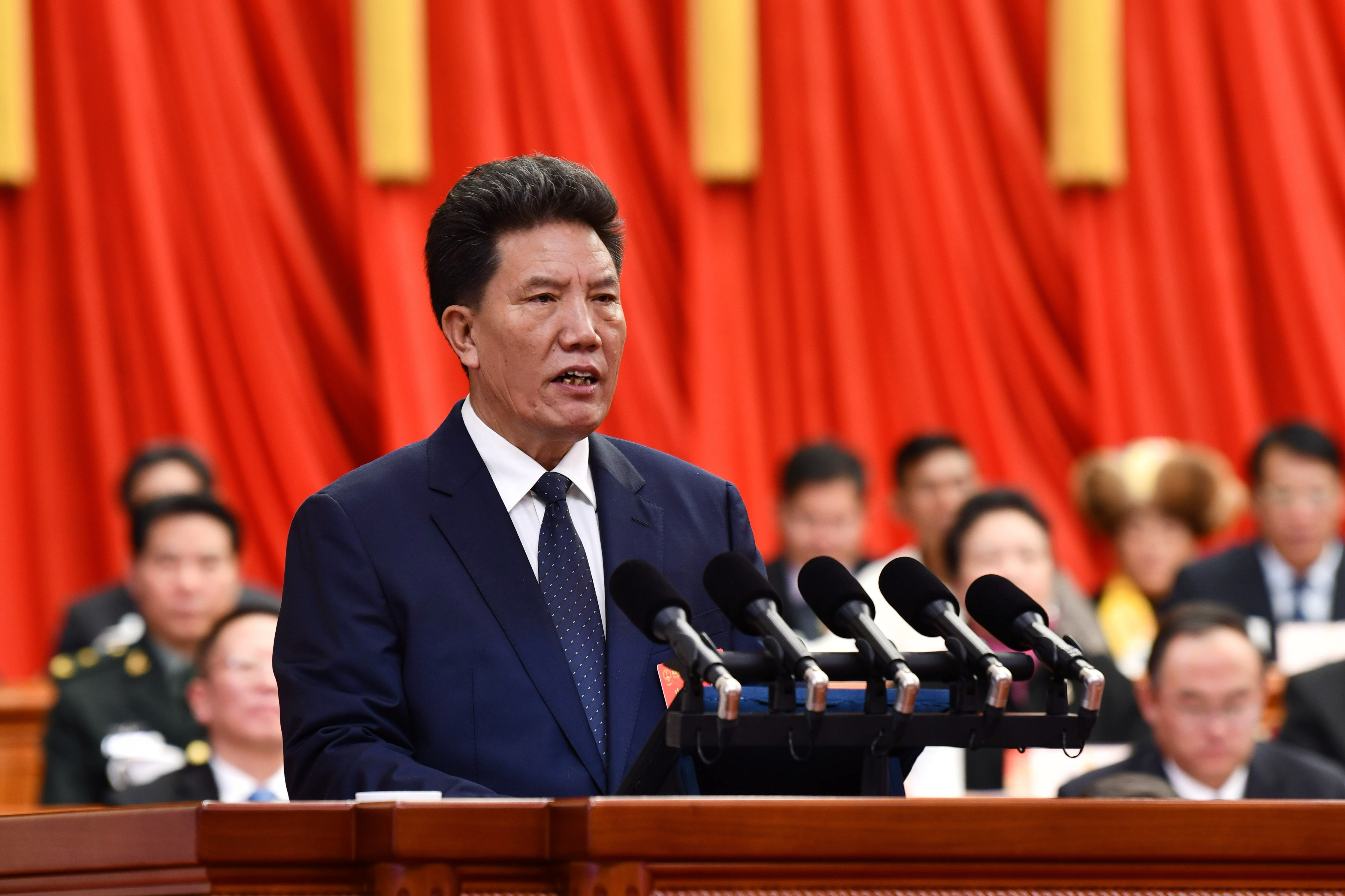 王君正嚴(yán)金海陳永奇劉江等在主席臺(tái)就座 洛桑江村作自治區(qū)人大常委會(huì)工作報(bào)告